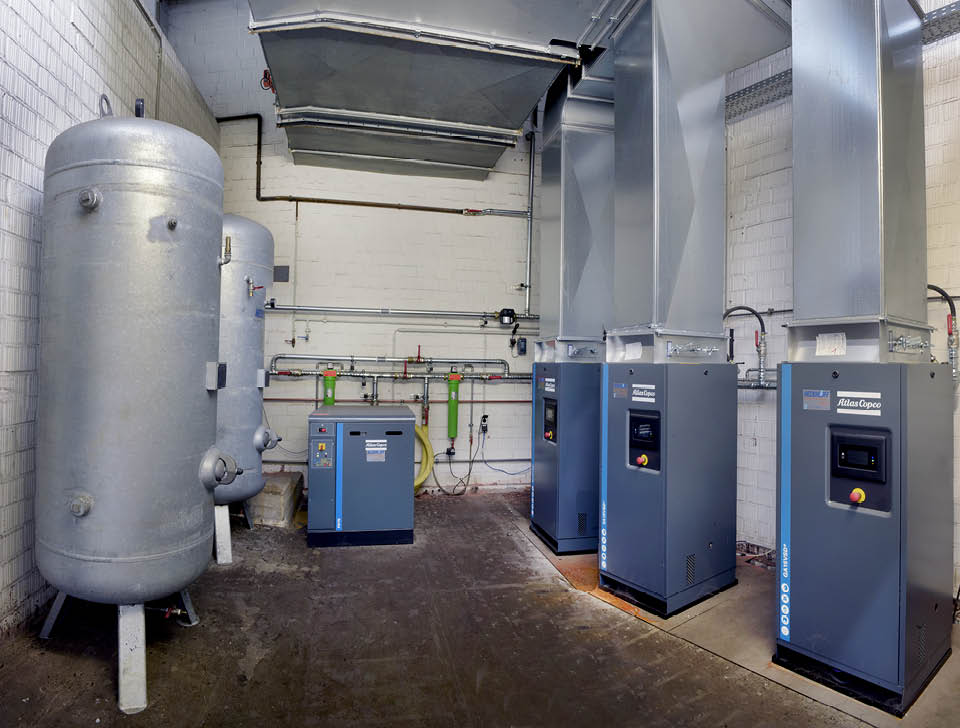 • Neue Kompressorenstationen verbrauchen ebenfalls weniger Energie und deren Abwärme wird zur Hallenheizung genutzt.